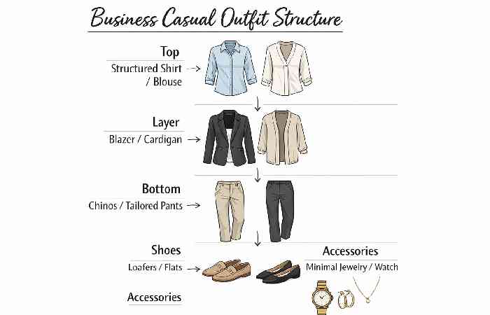 A business casual outfit women balances professionalism and ease, specifically in flexible workplaces.